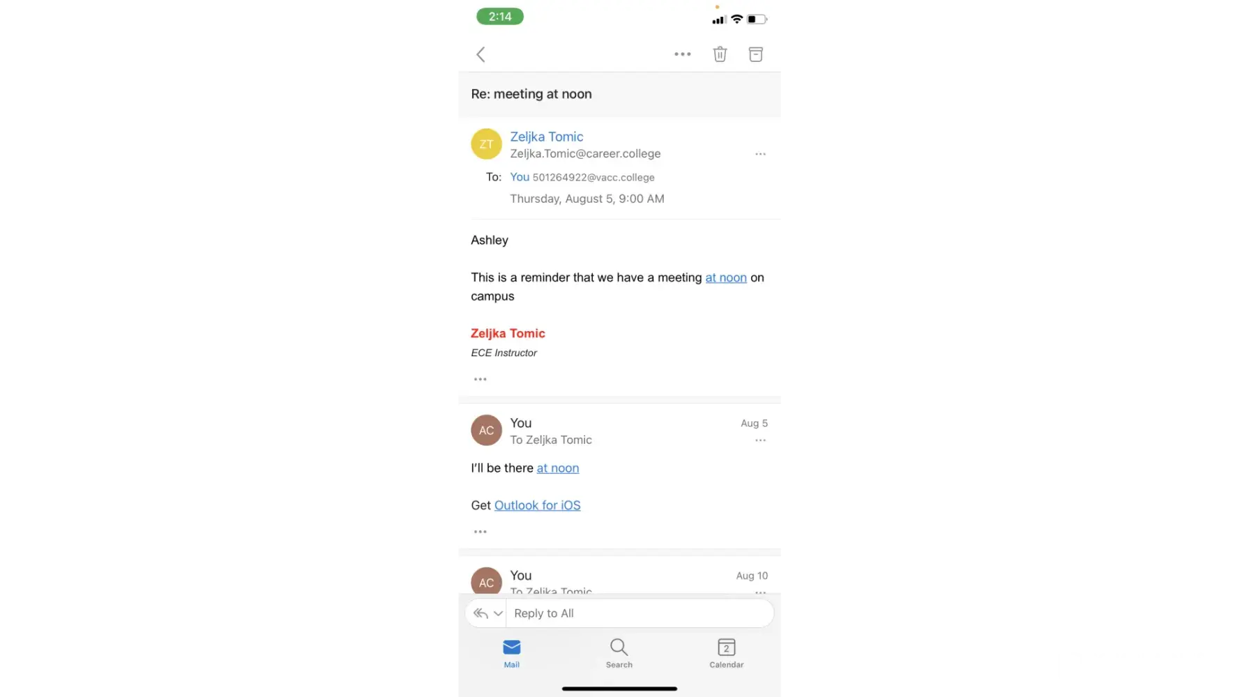 And I did also send an email to [protected]@career.college and did not get a response from them