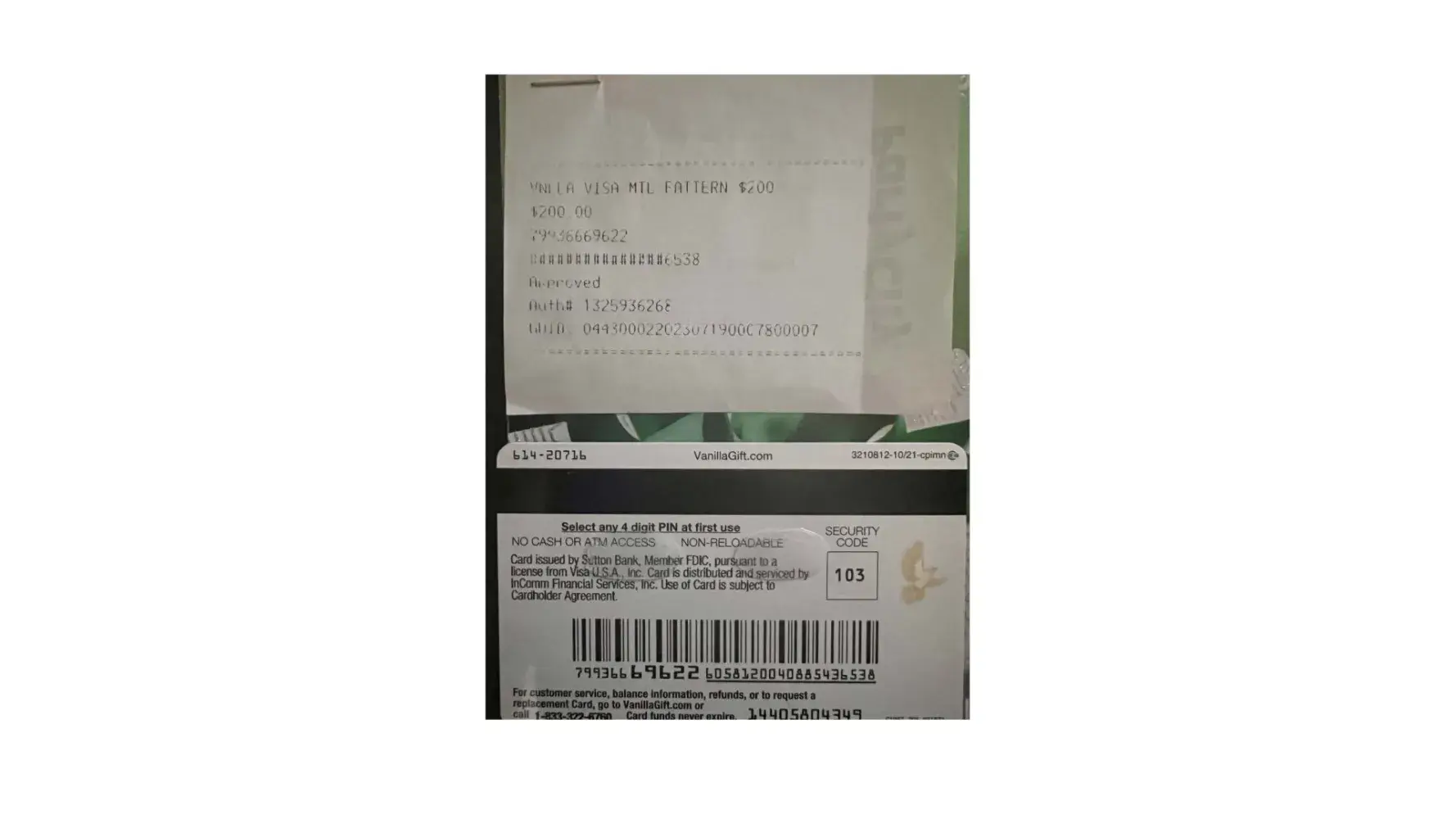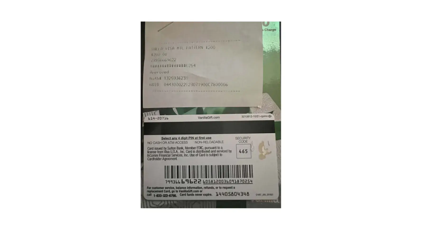 [protected]. You speak with a person who is from "card services" and the company was Incom (or something to that affect - was not clear and was not happy i was asking) and they want all kinds of personal information. I am reaching out to my in-laws who gave me the gift card to see if they still have the receipt or this person said they can get an electronic journal from the store they purchased.