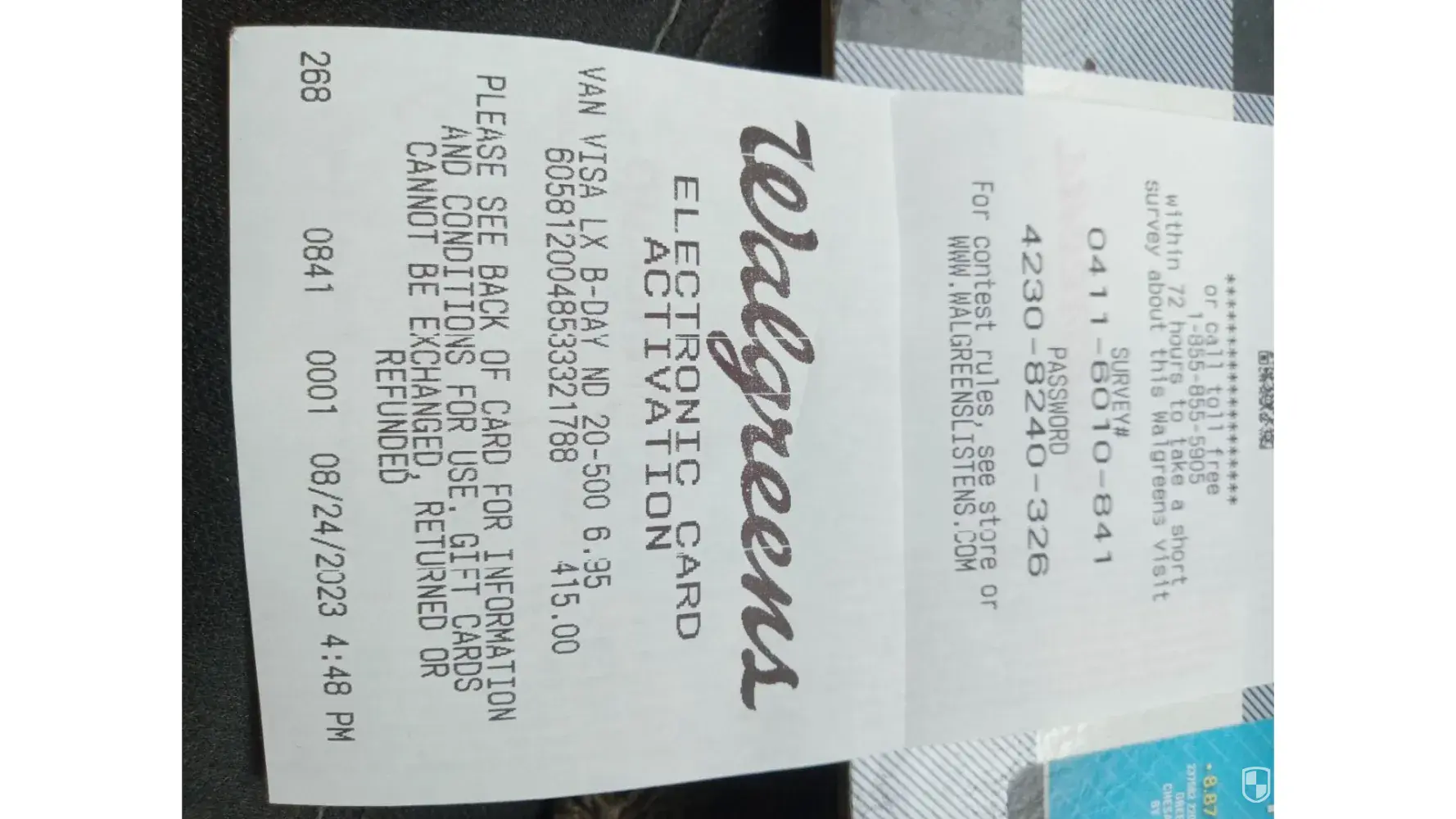 It has no 3 digit code on back and can’t be activated…company will not reimburse me and has been lying to me about a so called resolution since 6/26/23 after many hours of waiting on hold to speak to manager…I had to resort to hiring an attorney to get my 500$ back from this Vanilla card come who are Thieves and Liars…..