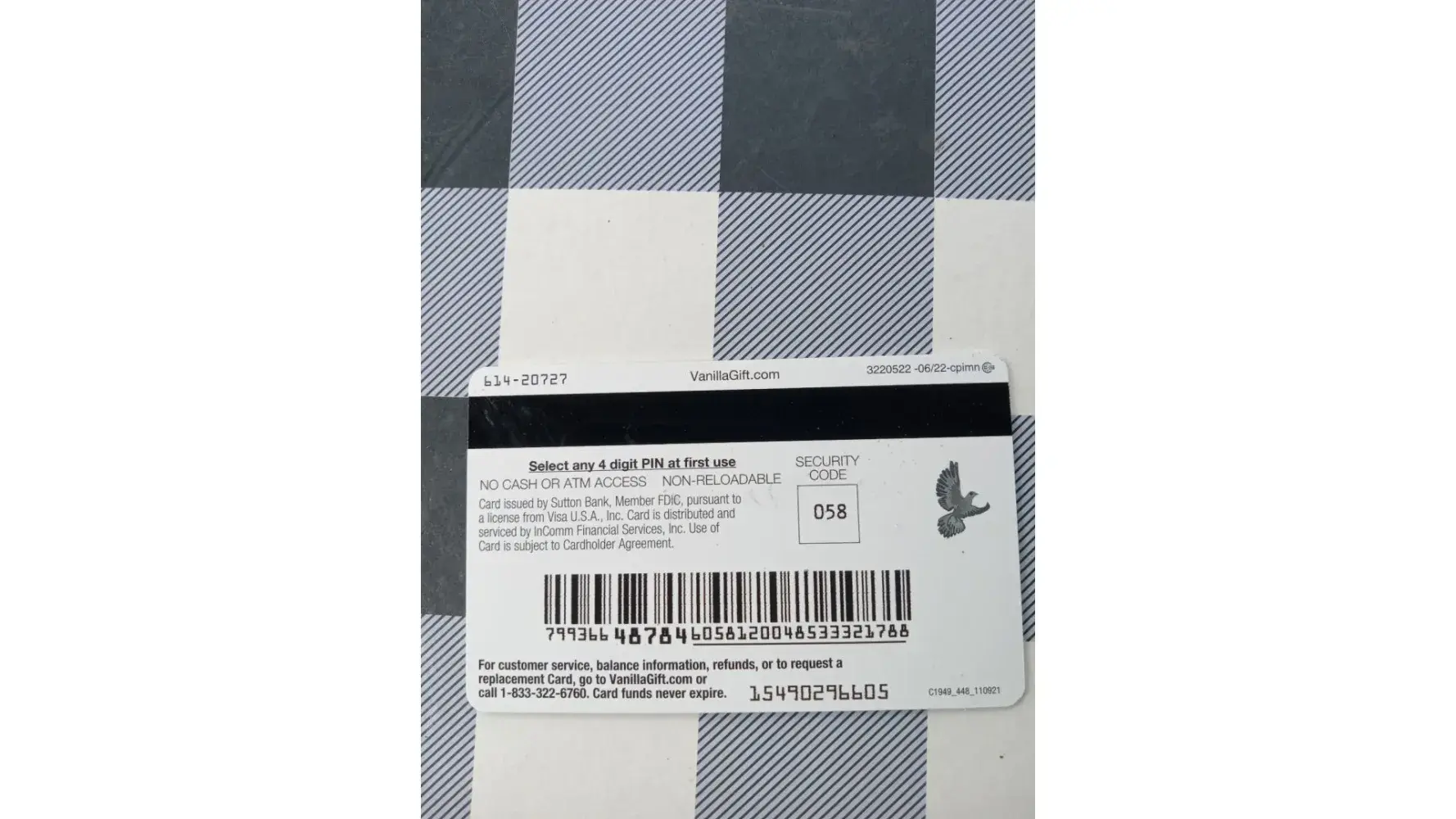 Defective vanilla gift card - only 12, not 16, digits