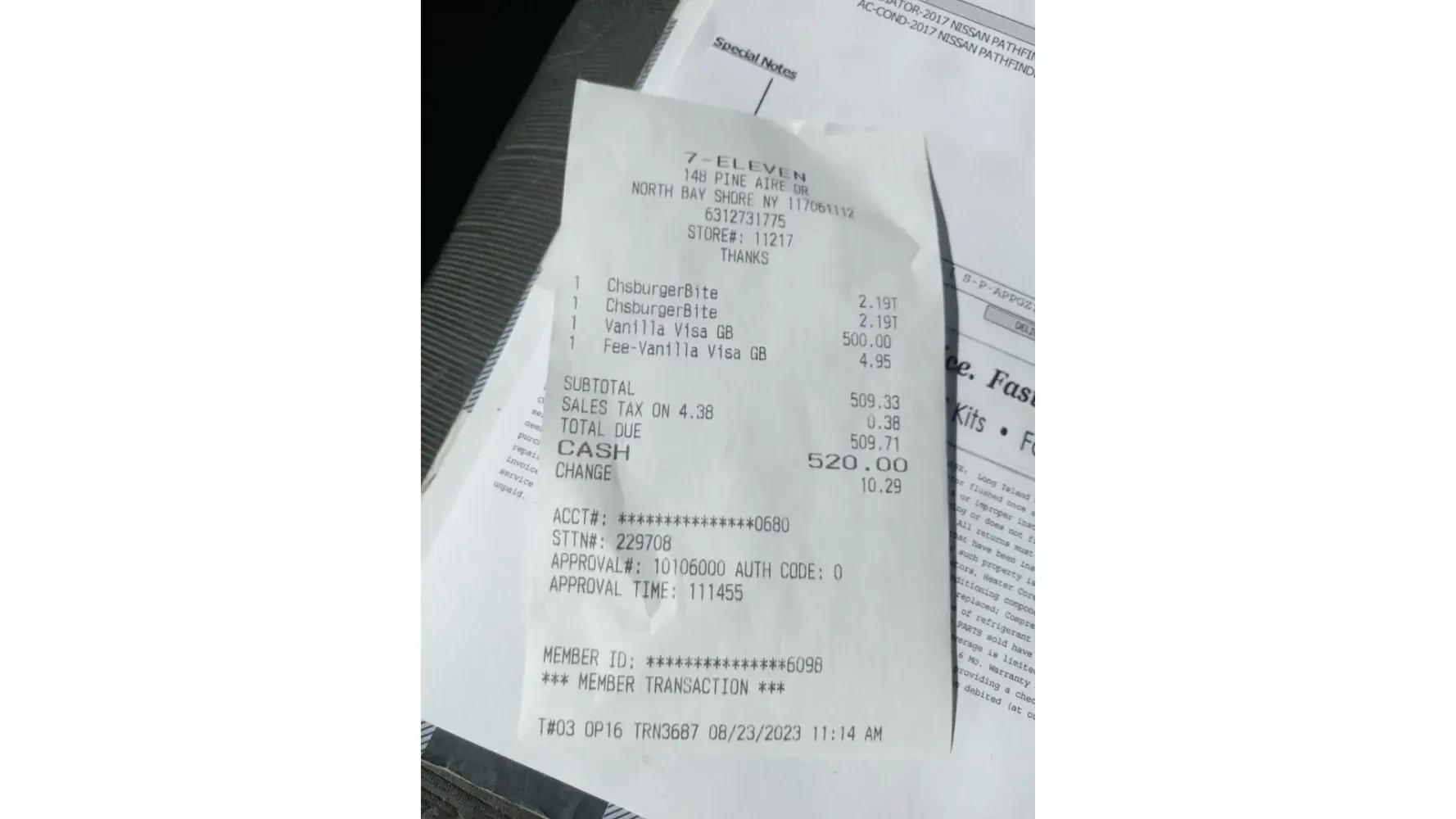 Vanilla Gift Cards 3 cards $500.00 each Compromised. Receipts CVS Total $1,520. Total.