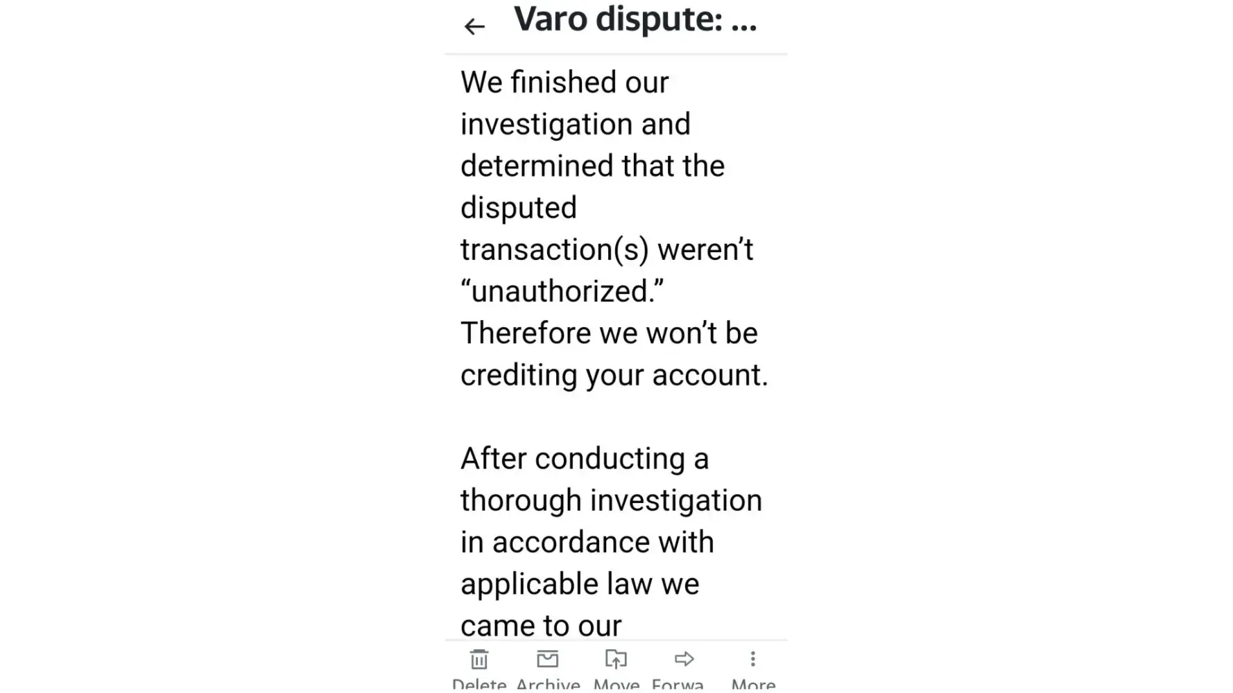 I filed a dispute when I returned from my business trip to Buffalo, NY. I live in Rochester, NY but I had to travel to Buffalo, NY on M check. Stayed at the NBC seats in June. first to June 5th. When I returned I noticed that the card holder of all my bank cards and credit cards on my desk was not in the spot where I used to keep it. So I went. So I went through it and all the cards were not in alphabetical order. They're either placed, replaced back in their upside down, or backward. And then I logged into my bank accounts to check to see what happened or if any of the cards were used. Yes, this bank card was used with number of other bank cards. So I return everything in my card holder back to the original way I had it canceled. the card and reordered a new card. for every bank, I had in there. Every bank emailed me new cards and the others. banks that were my card were used by me. turn my money after they did. A very thorough investigation. but this bank, by the name of Varro Bank, did a poor investigation. The company that handles the ATM said that no one from that bank has requested video recordings of the days of those transactions. We would have been more than happy to turn them over. So I wrote tomorrow's bank dispute. sent them a letter and then sent them a copy of my photo ID and telling them that they did a very poor investigation. When I filed this complaint I told them and then they found that in their favor. Then I appealed it Then the appeal was taken so long. that I kept calling to find out what was going on. Oh, give it some time. They say to give it some time. This bank is a scam bank They go along with the criminals. They should be shut down or closed down. So therefore they're saying that I was in two places at the same time, which is impossible. I don't drive. I don't have a driver's license. I have to take the bus or an Uber or a Lyft. I am not paying large. the sum of money of $161 from Buffalo to back to Rochester and then back again. That's a one-way trip. But Varo Bank and saying that they did an investigation which the investigation was very poor. and wants to be stupid. So I recommend people to stay away from this online banking and go to real banks..