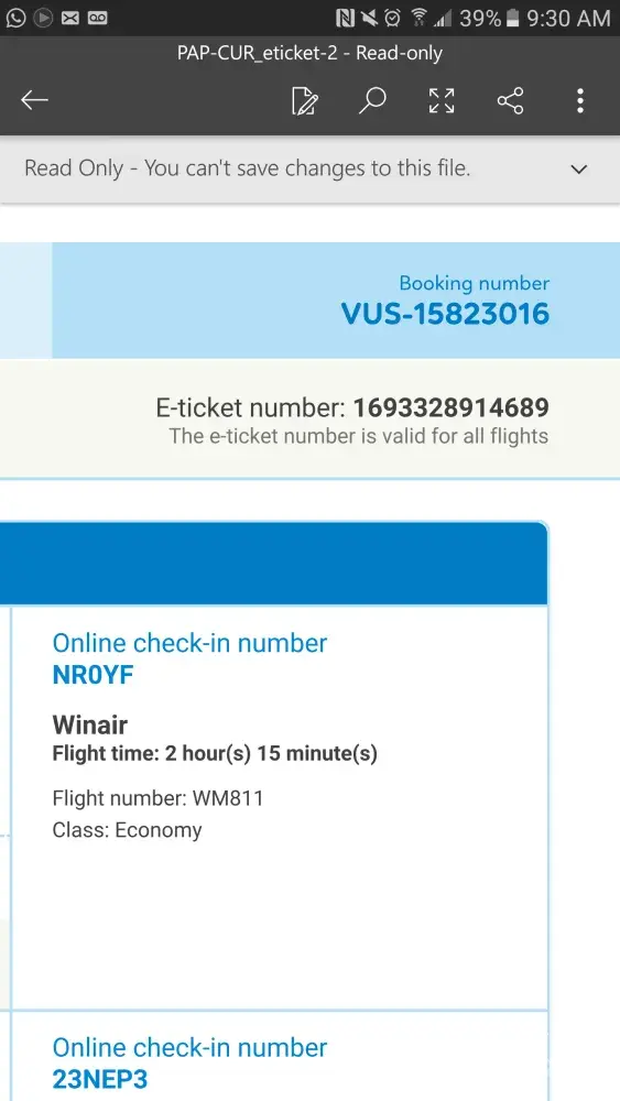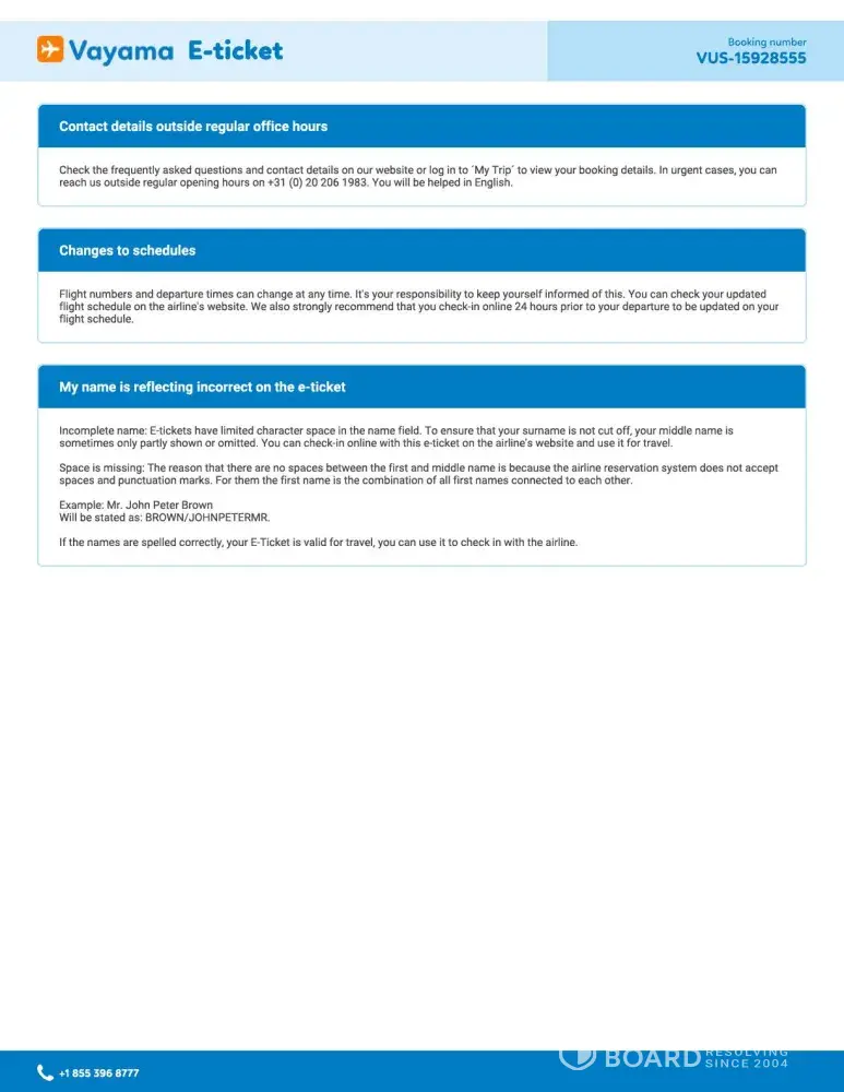 I booked 2 tickets on aer lingus flight el105, vayama booking #kusw-8162602. I was issued an e ticket for myself and wife.