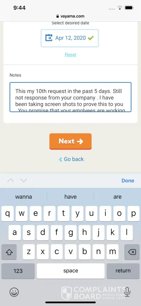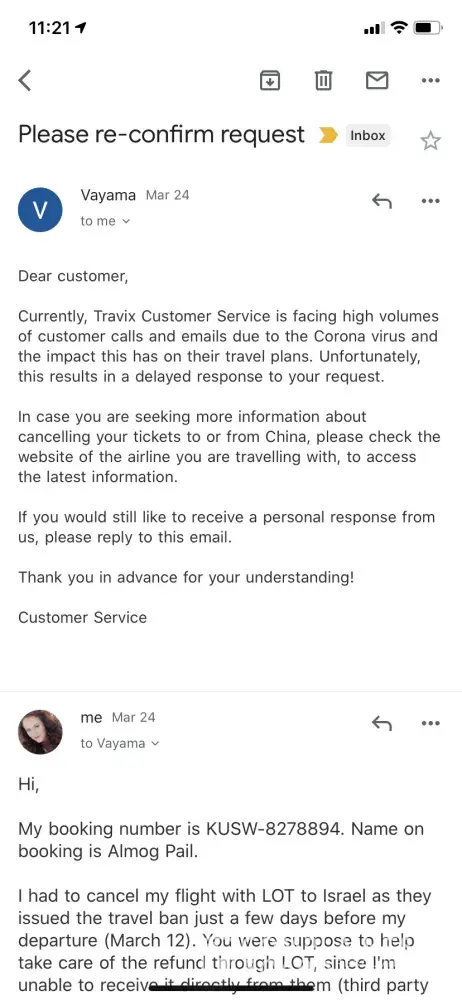 I took screen shots of twenty or so times I contacted Vayama since the middle of March 2020.