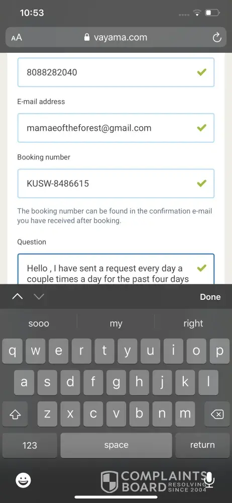 Hi, I tried contacting Vayama 37 times with only one response (finally) but after that response there was never a reply. So after 40 tries n my part to get a refund or Evan have someone talk to me, I am forming a complaint.