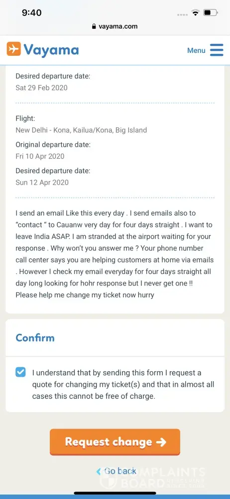 While airlines are offering voucher or free of charge dates change, Vayama is ignoring customers requests and not making a date change a free option. Not possible to resolve via airline directly as Vayama is used as travel agent. No clear instructions on their website to follow. In light of COVID which received Disaster Designation in the US. Not possible to reach them via call or email provided for customer services. No real time updates email on what to do for customers with upcoming travel scheduled.