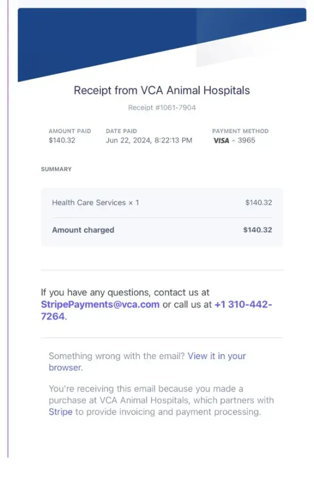 I brought my 16-year-old cat into our VCA animal Hospital because he was in excruciating pain and unable to walk on his left hind leg for two days. The veterinarian charged me for an examination a basic examination of the ears nose throat teeth glands kidneys etc. Why on earth would a veterinarian proceed with a basic examination when I brought my cat in with excruciating pain and a leg problem that turned out to be a shattered hip?! The veterinarian should’ve just did the x-rays immediately instead of putting my cat through more excruciating pain than he was already in by doing an unnecessary basic examination.