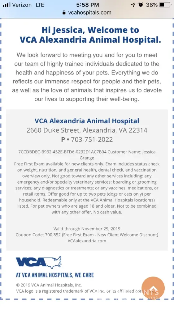 I called ahead when I saw that the first visit was free. Kayla was rude to me at intake. Upon payment of my pet's medication, I was charged $186.91 and I was told by Kiana that I needed to bring a printed coupon. Nothing about a printed coupon was communicated to me when I called beforehand. The customer service here was poor. I have a digital coupon, which I can validate.
