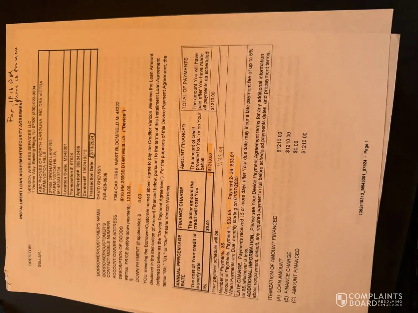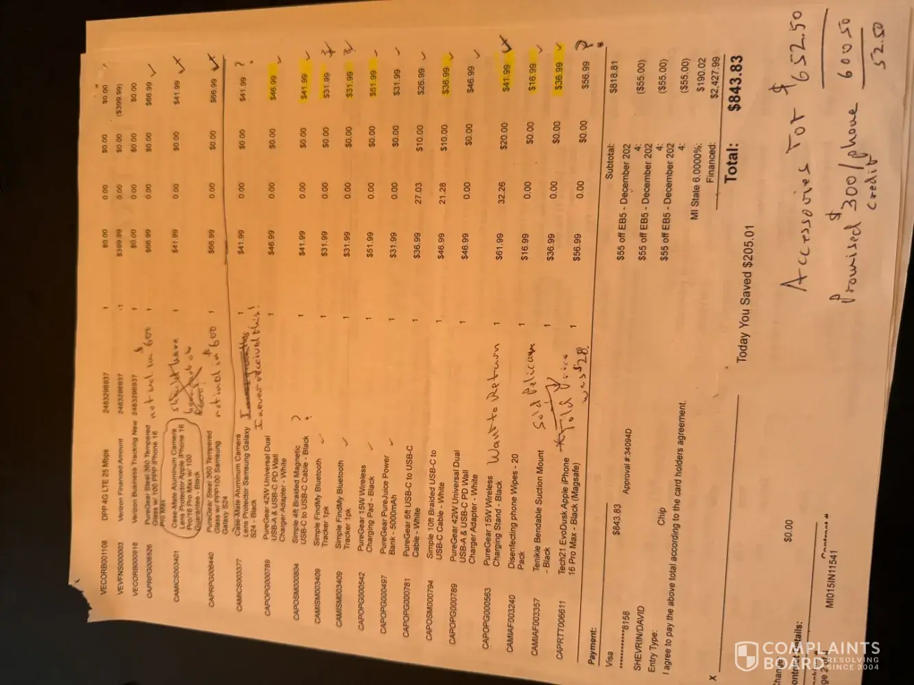 On 11/29/24 (Black Friday) I went to a Verizon Store at 27905 Orchard Lake Rd, Farmington Hills, MI 48334 & signed up for 2 new Business lines, WiFi service w/ gateway & purchase of an S24 & i16 Pro Max. As part of the Black Friday promotion they gave me $800 and $1,200 respectively in devise credits for the full value of both phones w/ 2 valid trade in...
