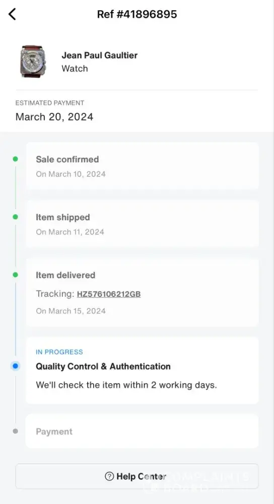 On 10 March 2024, I sold my Jean Paul Gaultier watch Ref #[protected] on your platform for £218.50 with an earning of £211.95. I shipped it on March 11 and was delivered to your warehouse on 15 March. According to your policy and the information provided on the sales records, the payment should have been issued within 2 working days. However, 6 days after and I’m still waiting for my payment. I have been in contact with Customer Support and sent approximately 500+ messages and emails only to be replied with automated messages. I have requested for a call from a manager a hundred times over however to no avail. This has put me in too much emotional distress and this does qualify as theft and abuse on your end.