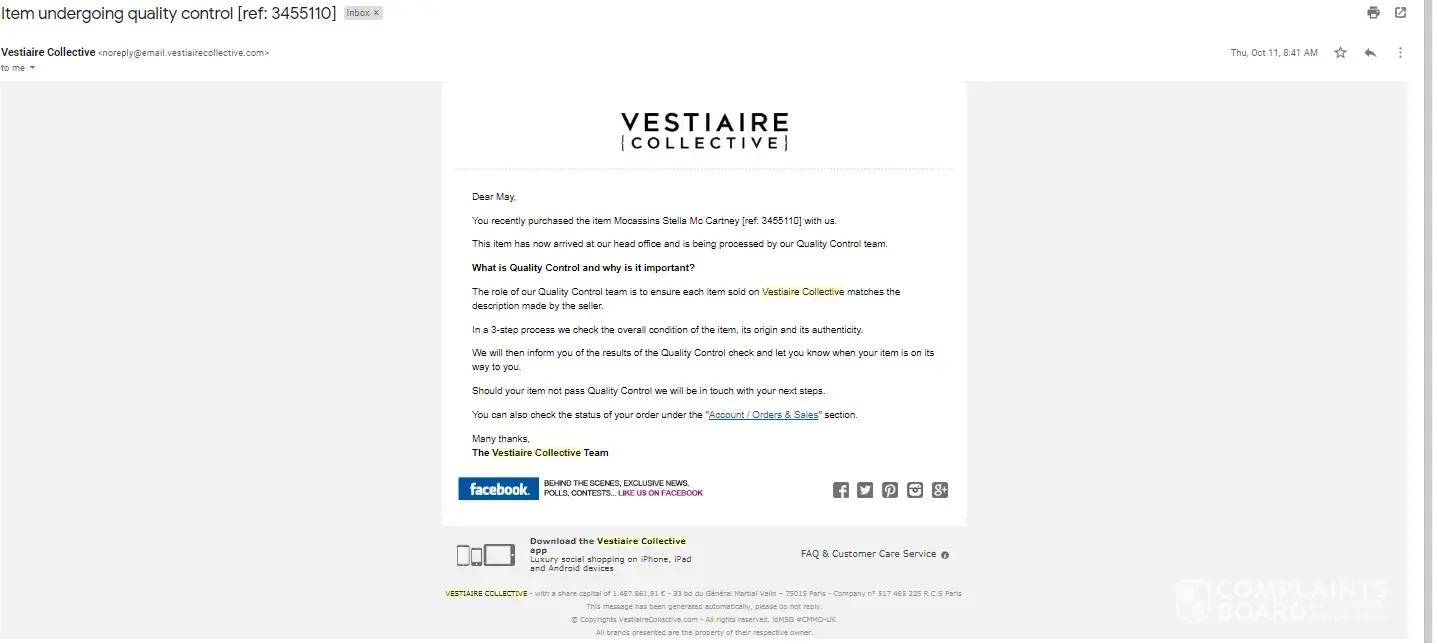 Avoid Vestiaire Collective at all costs. As the vast majority of reviews suggest, the company only stands behinds it sellers, and cares nothing for customer service or satisfaction.