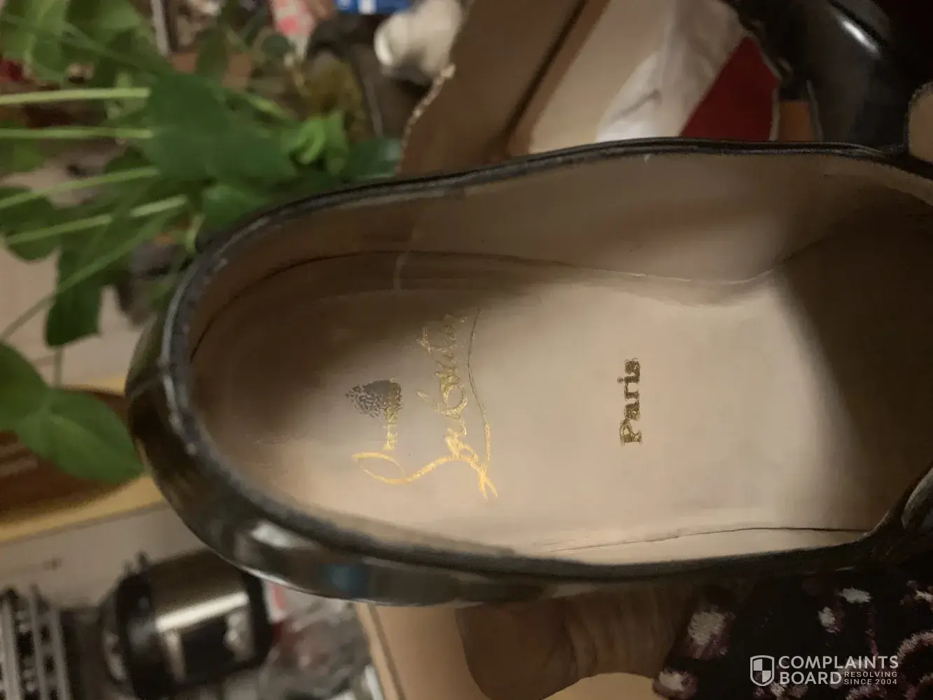 The first image is what i received and the second is what was advertised. These are two different shoes (in first photo). The left shoe's sole is a different texture, color, and the "made in italy", Chanel logo, and size that's emblazoned on the shoe is different. They're also different sizes; my left foot (which is naturally smaller than my right) hurts when I put the left shoe on while my root foot/shoe is completely fine. The company thinks there's no real difference between these shoes, that the sole was just cleaned with a "wet towel" and refuses to allow me to return the shoes despite them clearly being different than what was advertised, and despite the left and right shoes that I received clearly being different.