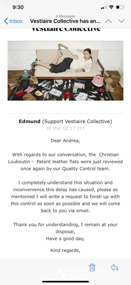 I have successfully sold a few items with Vestiaire Collective. Until recently I have sold an item and sent it on time. ONE MONTH has gone and the item is still under quality control! I've tried to send numerous emails and call customer service to request to speak to the higher team. However every time they only give me standard answers and apologies like reading from a script but without actually solving the problem!