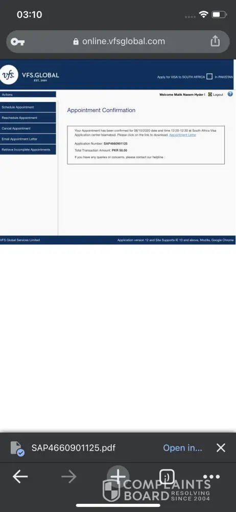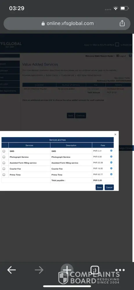 While booking an appointment to submit a visa application at Pakistan for South Africa, booking portal shows an appointment fee of PKR-50 but upon payment though credit/debit card they deduct USD-50 which is a huge difference and they charge hell a lot...
