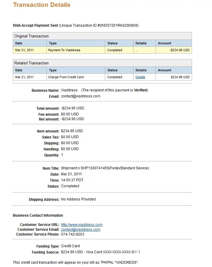 9. So much for customer service! There was no attempt at all by 'Kelly Snow' or anyone from Viaddress to reply to my questions or to even explain why I was conned into paying for shipping based on a box which they DIDN'T use.