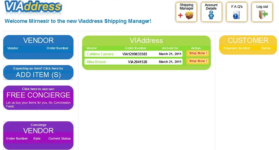 I am from the netherlands. I decided to try viaddress as they advertised on they website that they are the most reasonable/cheapest shipping company when compared to others. I signed up, I even used their shipping estimate calculator so I could have an idea of what it would cost me to ship my items. Their advertised concierge service doesnt even work and thank god for that because i wouldnt want to ship anything else there.