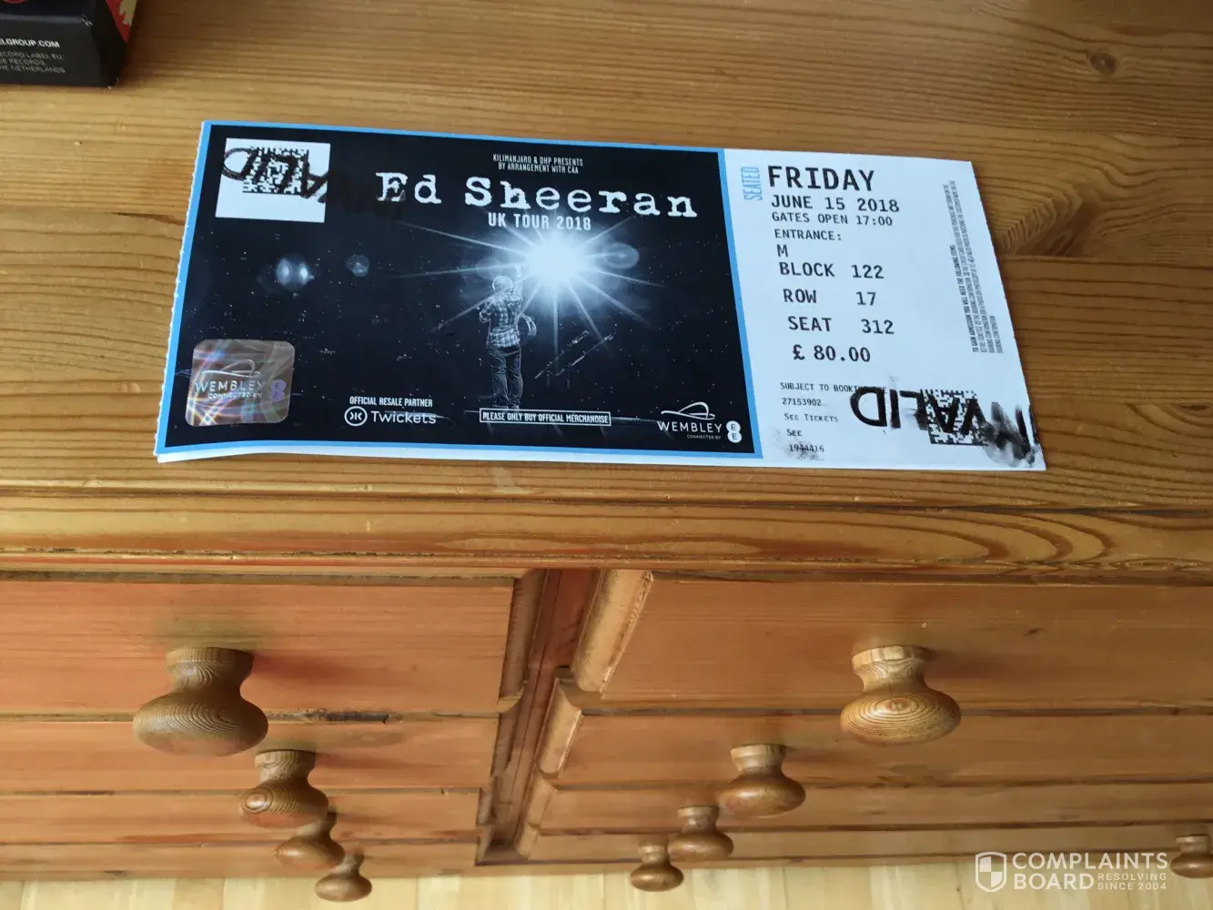 Please refund my invalid concert tickets for Ed Sheeran Wembley on June 15 2018 under section 2.15 of the Viagogo guarantee . Order placed 08/07/2017 order ID [protected] Mrs C Haseltine 22 Rosemead Benfleet SS74JQ. Please see attached invalid tickets. I have contacted Viagogo on several occasions regarding my concerns but was assured that the tickets would be valid, so as you can imagine the distress this has caused me, as this was a gift to my son & daughter in law.