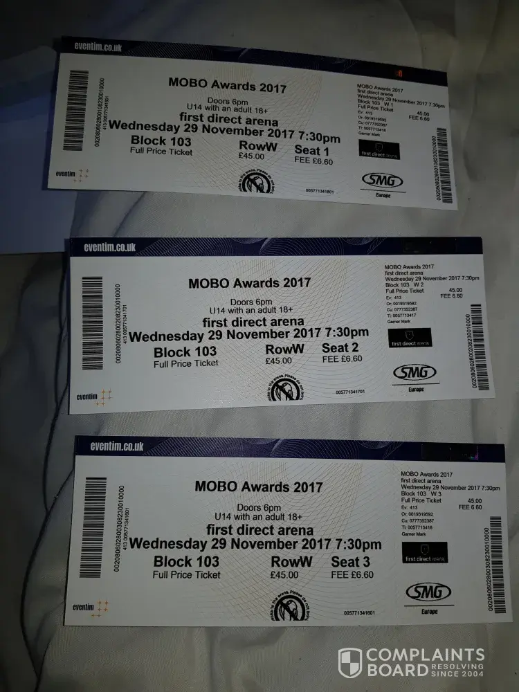 Purchased 3 tickets at £84 = £346, with no restrictions on viewing, paid by card. When tickets came it was for a lot less £45 each and not £84. When I contacted viagogo for misrepresentation, customer service was no help. They do not tell you the ticket price you pay is not what you are receive and that they wld be scamming half yr monies to pocket. When contacting mobo awards you then find out you purchased tickets from ticket touts. It's a ticket touting scam. Need to warn people. Viagogo need to be investigated and closed down. The young and old ate been scammed. A lot of people struggled to get monies together for a smile from there child or family member. Grandma an granddad, unsuspecting. Want to give a cool christmas present get trapped. Viagogo ticket touts need to be stopped.