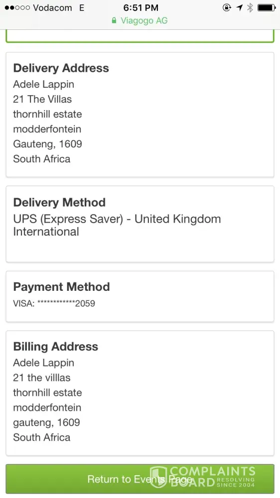 My Boyfriend has ordered tickets via Viagogo for tickets to Jingle Bell Ball. These tickets have been said that they have been delivered which they haven't. Me and My Boyfriend have contatced UPS and they provided a signature that looked like a squiggle. They stated they cannot do anything else as the tickets have been "delivered" and signed for. We then went on to contact Viagogo's customer service, which is infact disgraceful and have been no help so far at all. The tickets have been paid for and not been delivered.