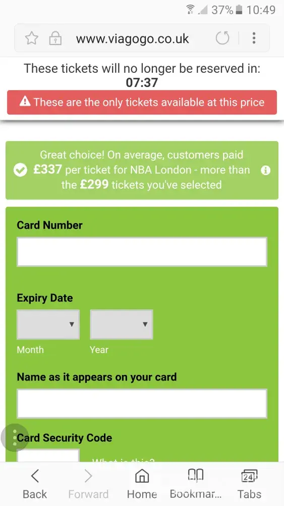 This morning I booked 2 x Liam Gallagher tickets for what I thought would cost me £82 per ticket.