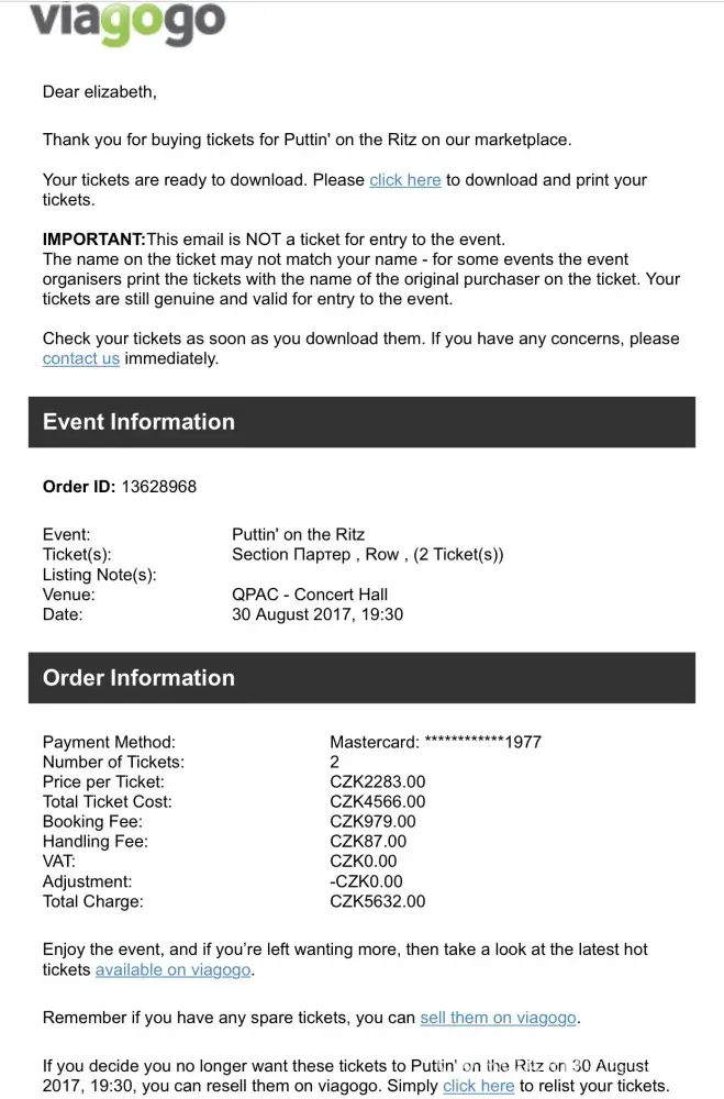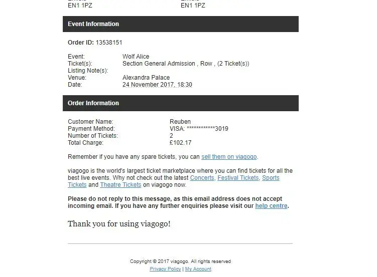 And when I replied to the Welcome to Viagogo email it bounced back as undeliverable - twice - and it was not a no reply email. This is also not great customer service.