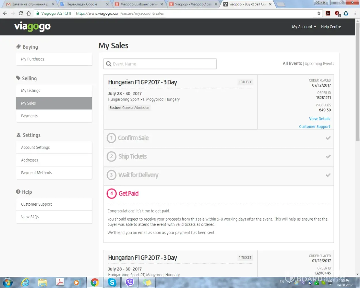 viagogo / can not receive the payment / order no [protected] & [protected]
