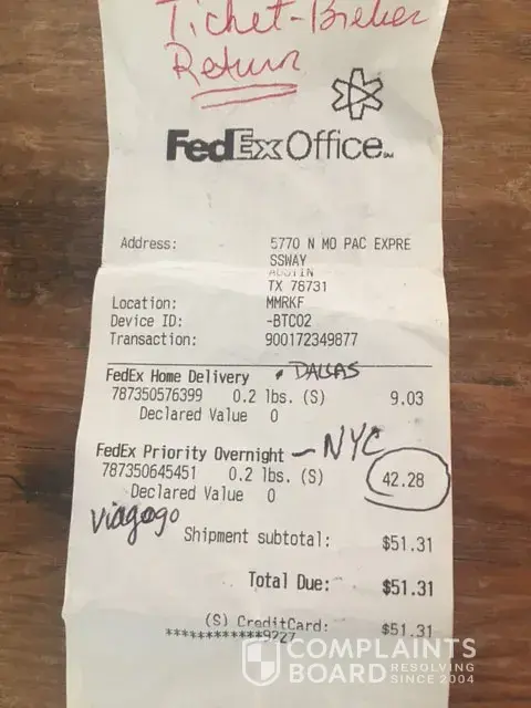 I federal expressed on 7/31/17 and per tracking number confirmed that Viagogo receptionist signed in as received on 8/1/17.