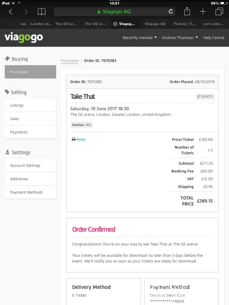 Firstly, this does not make any sense as VAT is at 20%, and should have been included in the cost of the tickets. Secondly, contrary to what Viagogo claim, there was no mention or statement of the additional charges during any time during the filling in of the forms to purchase the tickets. Thirdly, on the initial page, there was no mention of additional charges.