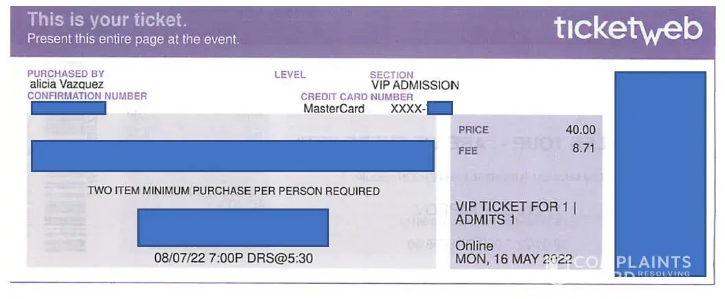 Desired outcome: Full Refund of money outlaid for the 3 tickets purchased