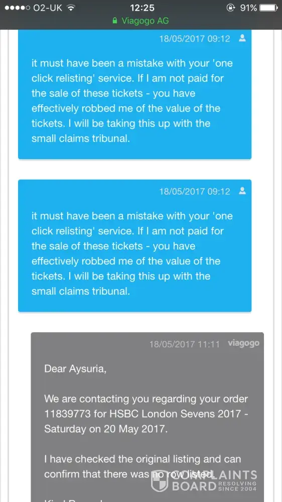 3. Despite sending me an email confirming the tickets are for sale I tried searching throughout the next few days and I could not find them. Viagogo did not put it up for sale therefore I did not get any of my money back!