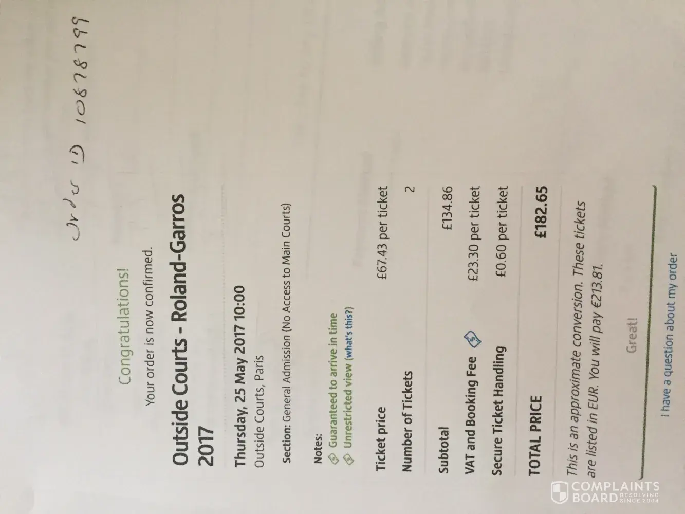 I have writen to both - Viagogo and the Forestry Commission about Order no ID 8821833