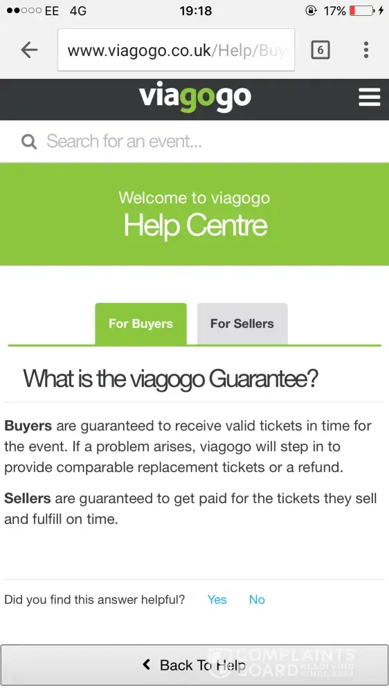 Viagogo cheated their customers by hook or by crook. When I bought my ticket through viagoro, it said ‘there is only 1 ticket available in section B, but when I checked it yesterday again, there were still 3 ticket available, this is cheat and serious fraud.
