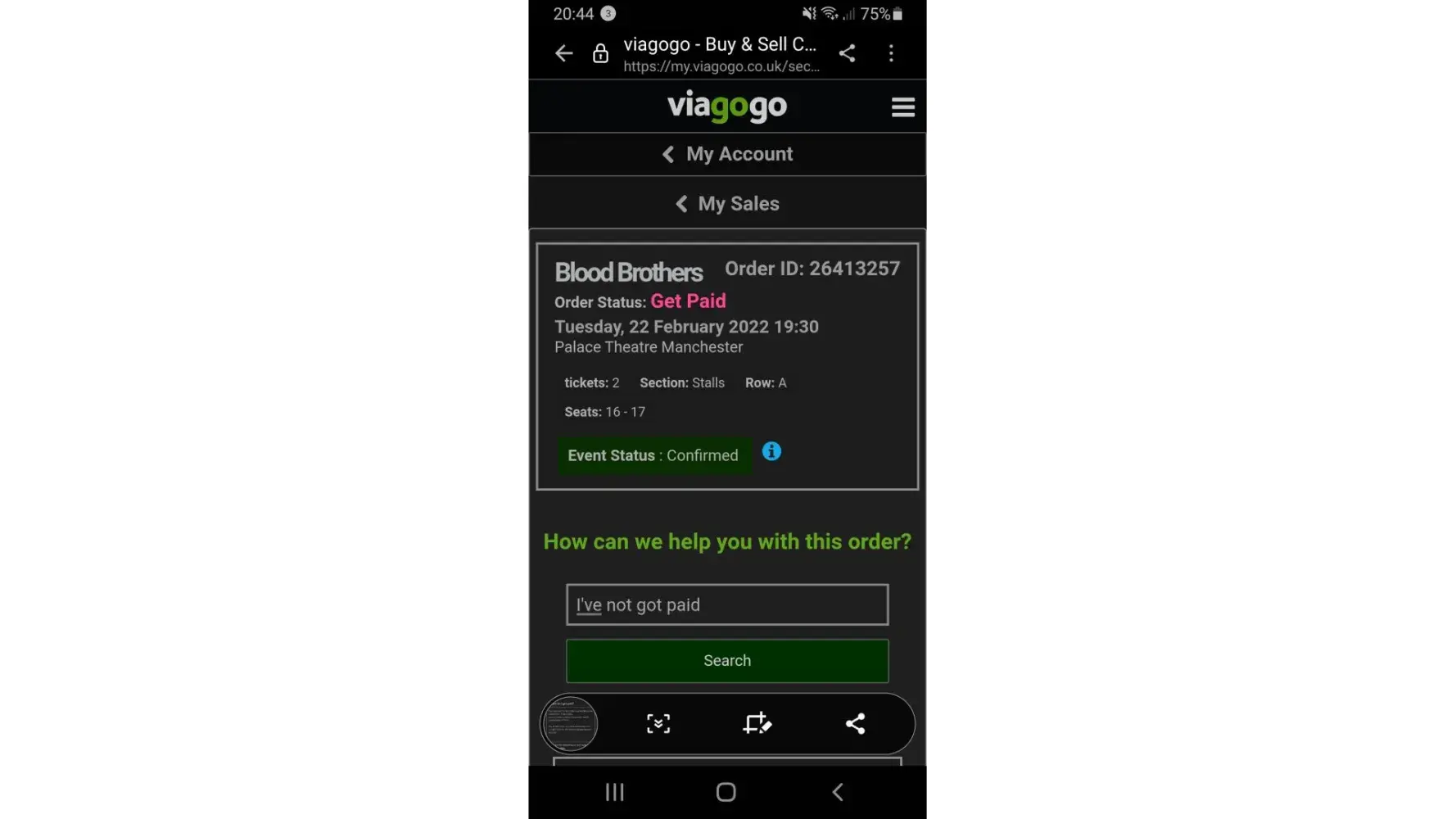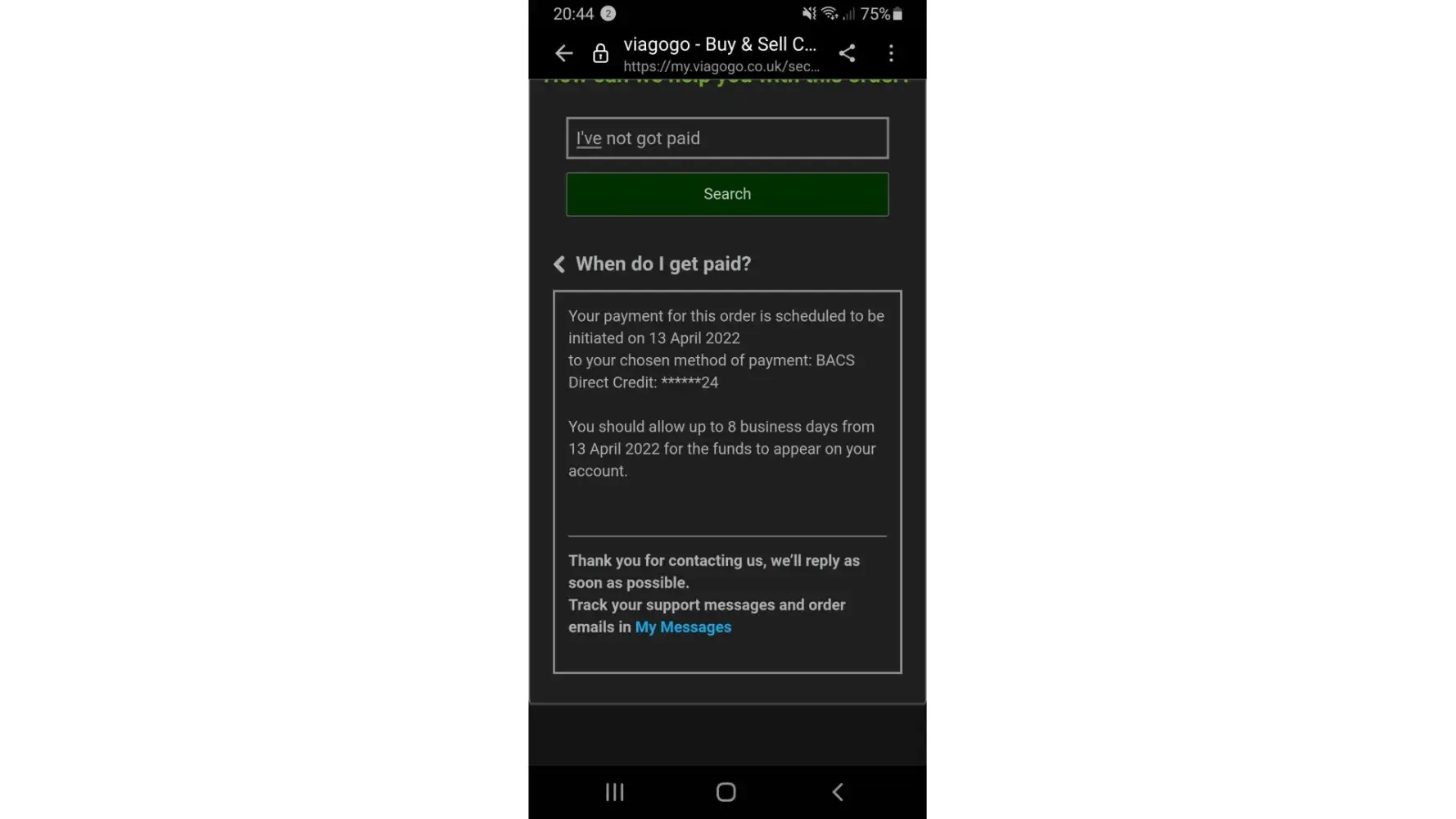I sold 2 tickets face value for a concert dated 18th march, both tickets sold and there terms and conditions confirmed payment would be made 5 - 8 days after the event. It is now 4th April and my payments still have not been processed. When I emailed initially they advised the concert had been cancelled due to covid, which was a lie as the concert went ahead and the tickets I sold were used for entry. When I emailed again they said it was a technical error. They are failing to give me money that is rightfully mine.