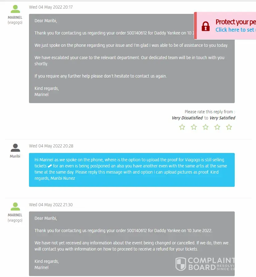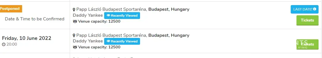 Curiously - the day after our complains - Viagogo changed the naming of the event, removing "Daddy Yankee" and replacing it with another artist's name (second screenshot attached to my complain here).