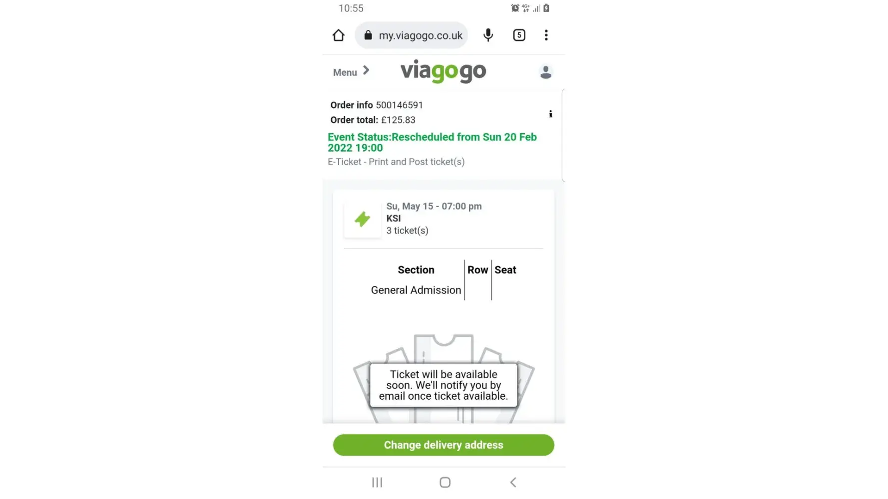 I bought 2 tickets through Viagogo for a Simple Minds concert in Lille France for March 2020. The concert was rescheduled twice and is finally taking place Monday, May 2nd 2022. The link for printing my tickets from viagogo is inactive and I don't thnink it was ever active and I cannot print them. Despite numerous emails and many failed attempts at calling them, I am still without tickets. The only reply from them is "we're looking in to the matter" or "it's being sent to a higher up department". I am less than a week away from the concert, with no tickets and wondering whether to book a car park space as I live over 100km from the event and whether I'll travel to the event or not. We've been looking forward to this for over 2 years. We paid over the rate for tickets (over 200euro). Hoping you can help or advise me with this. Thanks for your time.
