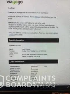 When I received the order confirmation (Order ID [protected]) I realized that I had purchased through Viagogo and the breakdown of the ticket price and booking fee and handing fees. It stated that the price per ticket is $132.61. Your online presence is very deceptive and people only realize later, once they have paid, that they are not purchasing through Ticketmaster.