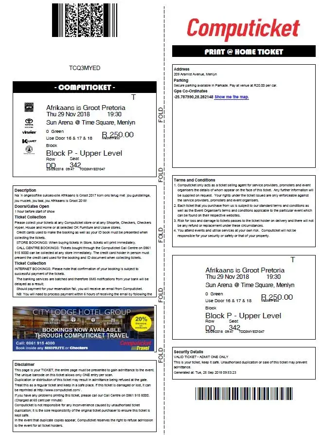 I want to know if the tickets for Afrikaans is Groot is actually user-friendly. I don't care so much about what I paid but I wouldn't want to get to the doors and then there is no seating or issues with my tickets.