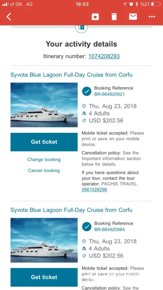 We as 4 couples booked for the tour from internet for the 23rd of August 2018 with Booking Ref of BR-[protected] and BR-[protected].