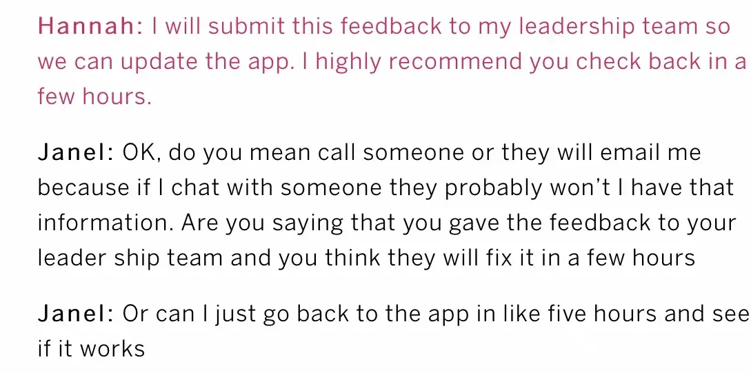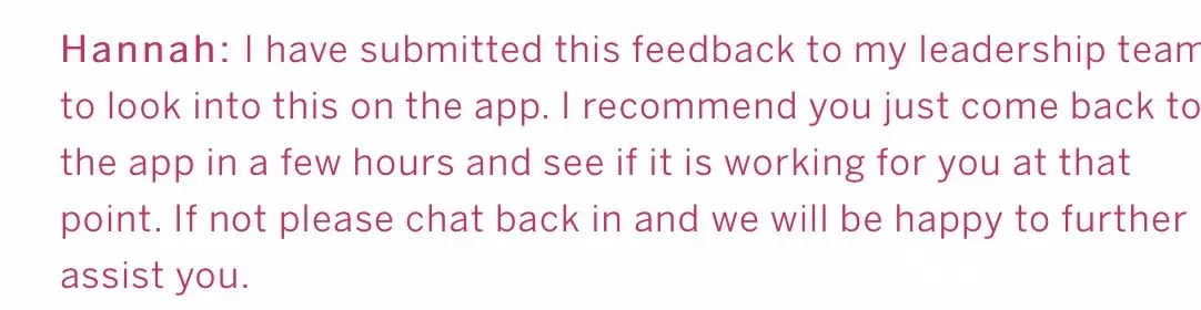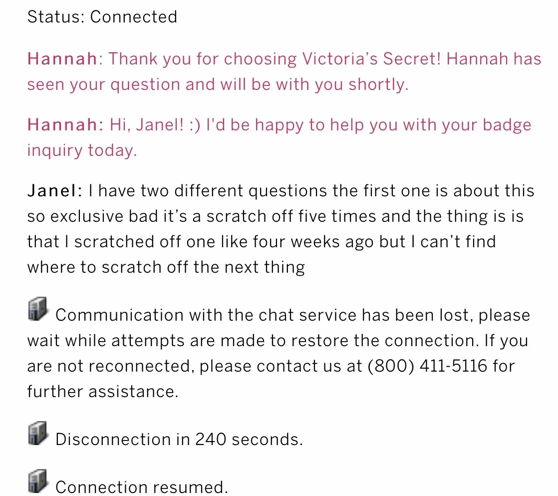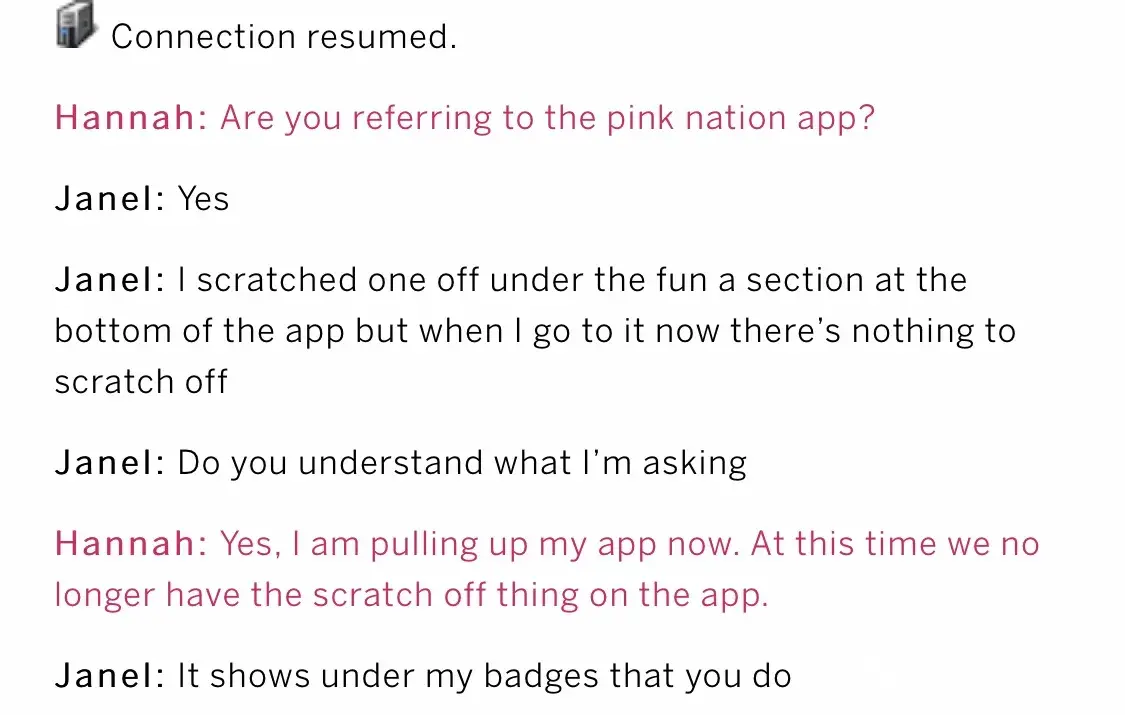 I don't have the time or energy to even go into the chat I had with your Pink representative.