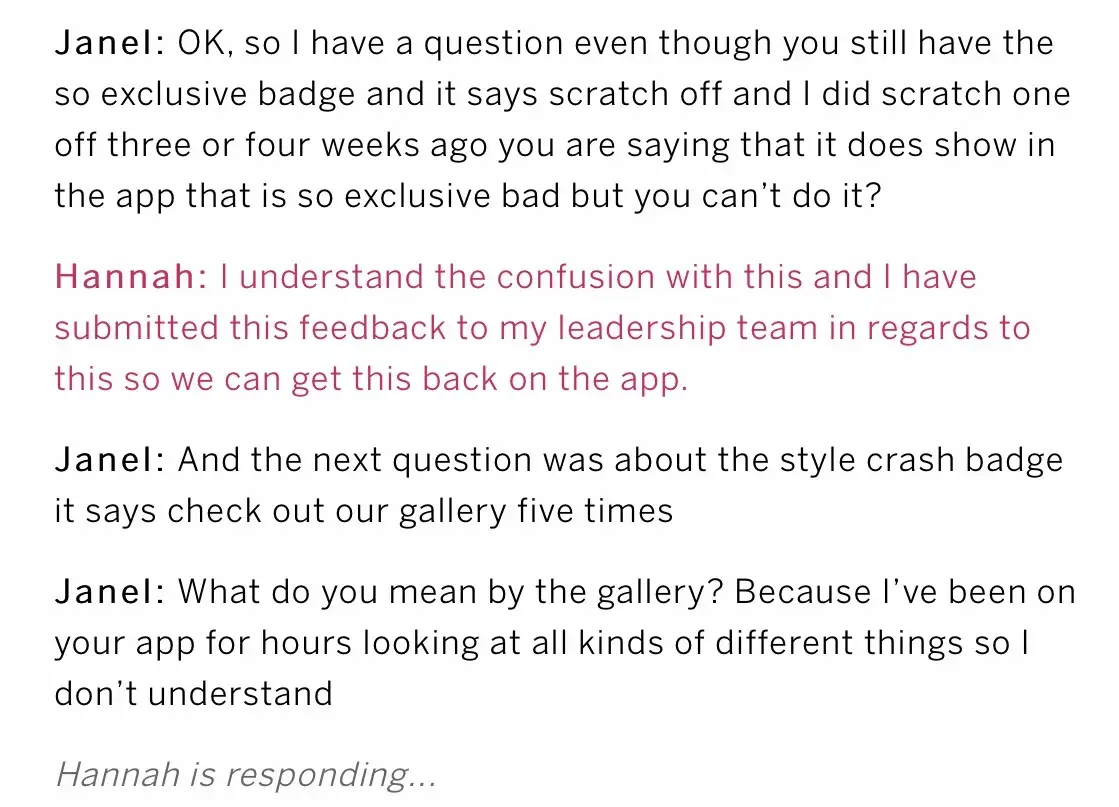 3. They didn't even want to look up any information on their computer about the question I was asking. I really thought that was weird because if she looked up badges or so exclusive badges on her computer or looked at the app herself she could have seen what I was talking about.