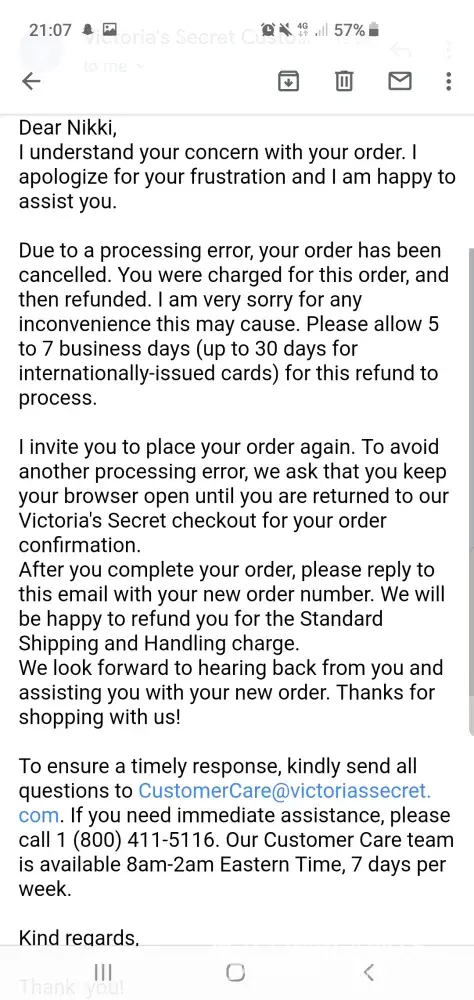 Even when put to Victoria's secret as clear as day they still have the cheek to send the same generic message that started all this.