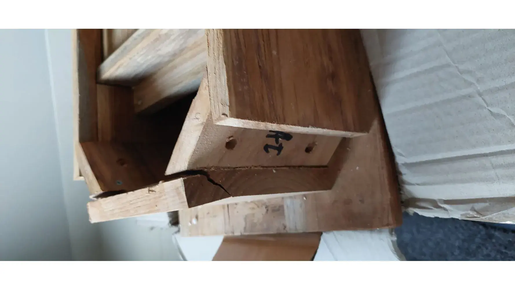I tried calling them again, but they only answer during really limited hours, which is tough for me because I work. When I finally got the boxes open, I found that the beds themselves were damaged too. I took pictures of that too, but since I couldn't get in touch with the company, I had to try to fix them myself. It was a real pain.