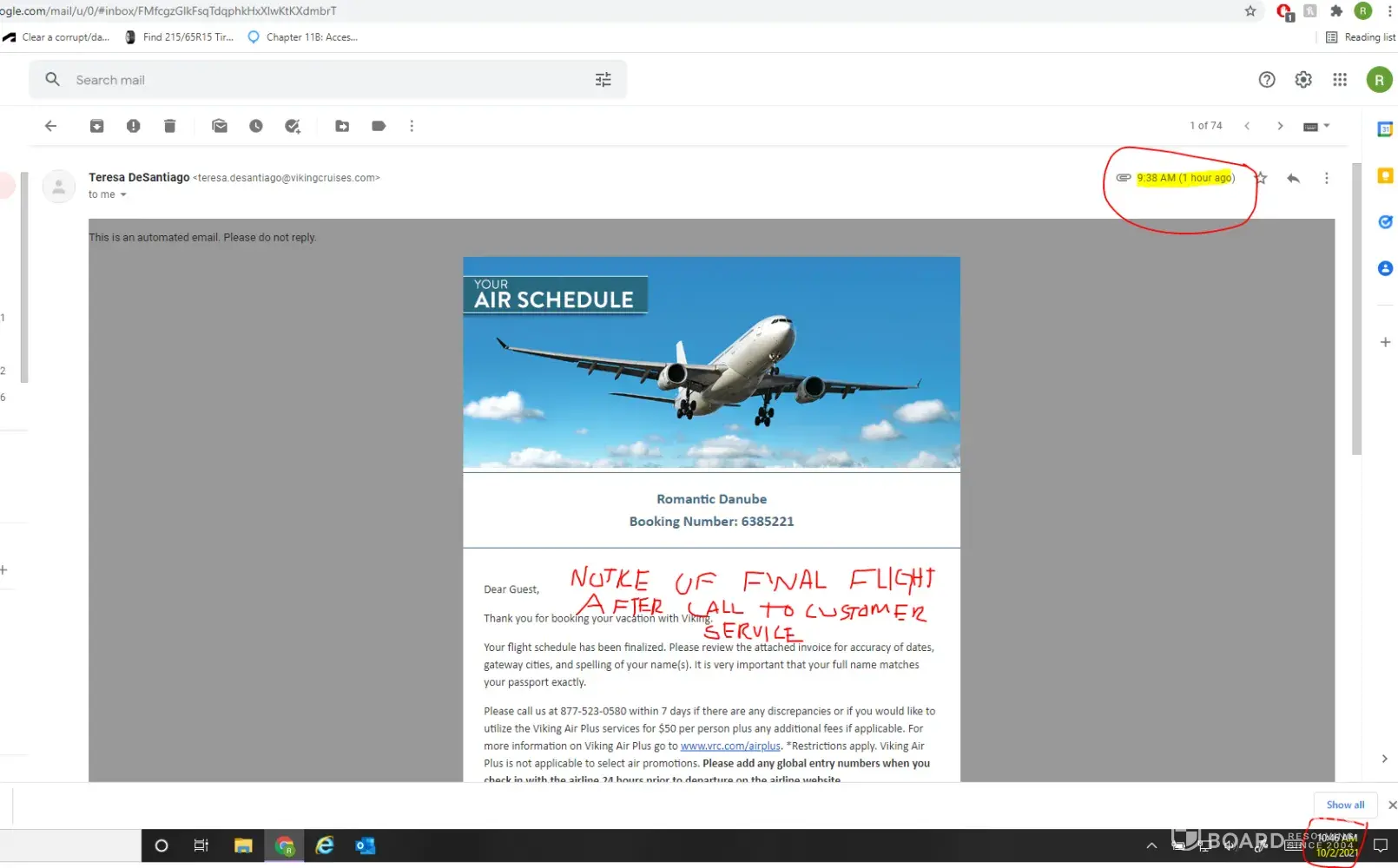 We have booked a viking river cruise in europe for this upcoming november. We paid for the air plus to select our desired airline/arrival and departure times etc... We were notified of a major flight change within the 60 day window of our trip, and then our tickets were apparently finalized 3 days later without notice. We are being told that we can not change our flight without a 350$ per person change fee. However I never received any notification of final ticketing until today (10/2/2021) AFTER I contacted viking air services to try and change our flight itinerary. This seems like extremely short notice and slightly deceptive as there was no clear indication of final ticketing or notification that we needed to contact viking IMIDIATLEY to change flights. We have now lost about a day and a half of trip time due to the flight itinerary change from the original selected flights, and are no longer on our desired airline. Viking customer service has reiterated there is noting I can do unless I pay the 350 dollar change fee.