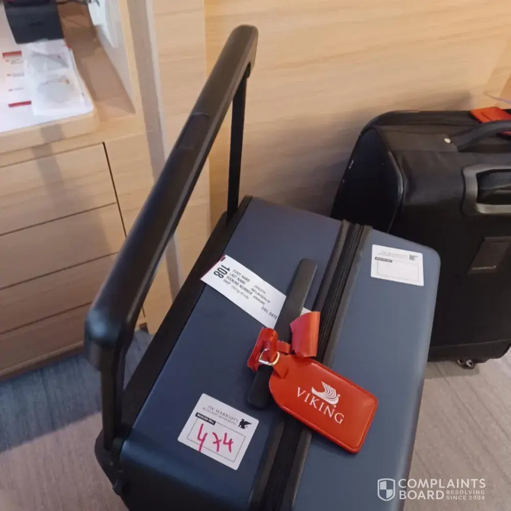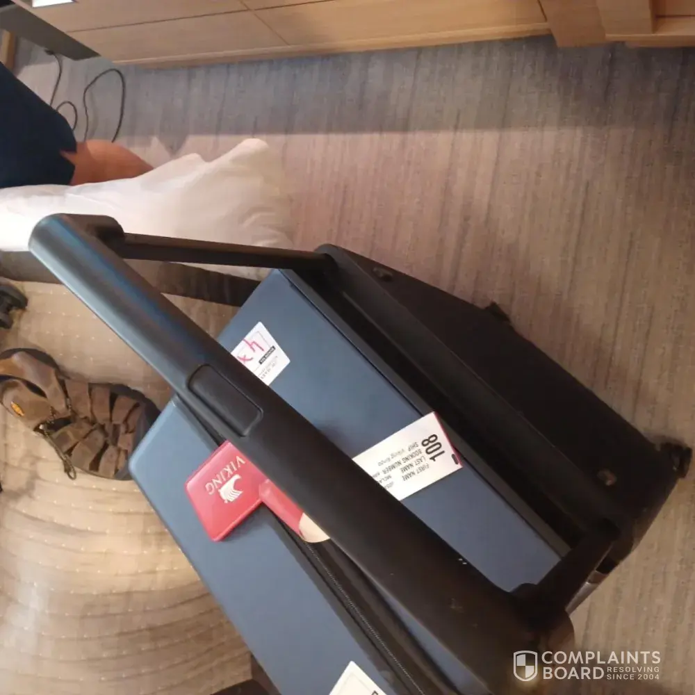 08/20/2023 afternoon after boarding Viking Rinda in Constanta, Romania, we arrived at our stateroom 108 and found our large piece of luggage with the retractable handle extended and bent. It was a brand-new piece of luggage.