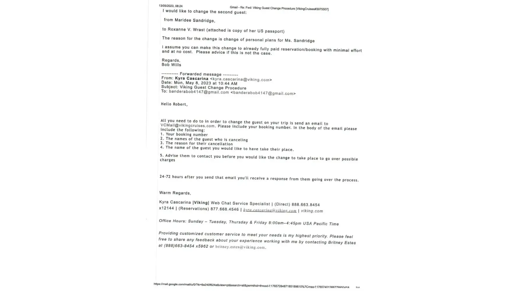1. Why despite filing a Transfer Request Form and numerous emails, including to the rep who handled our trip reservation, did we not receive any communication from Viking?