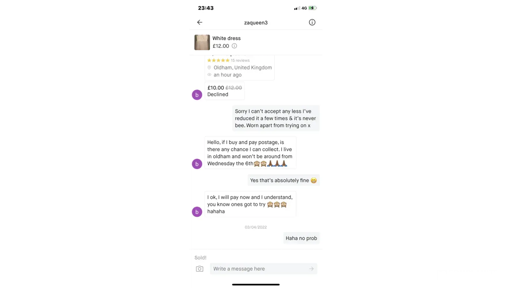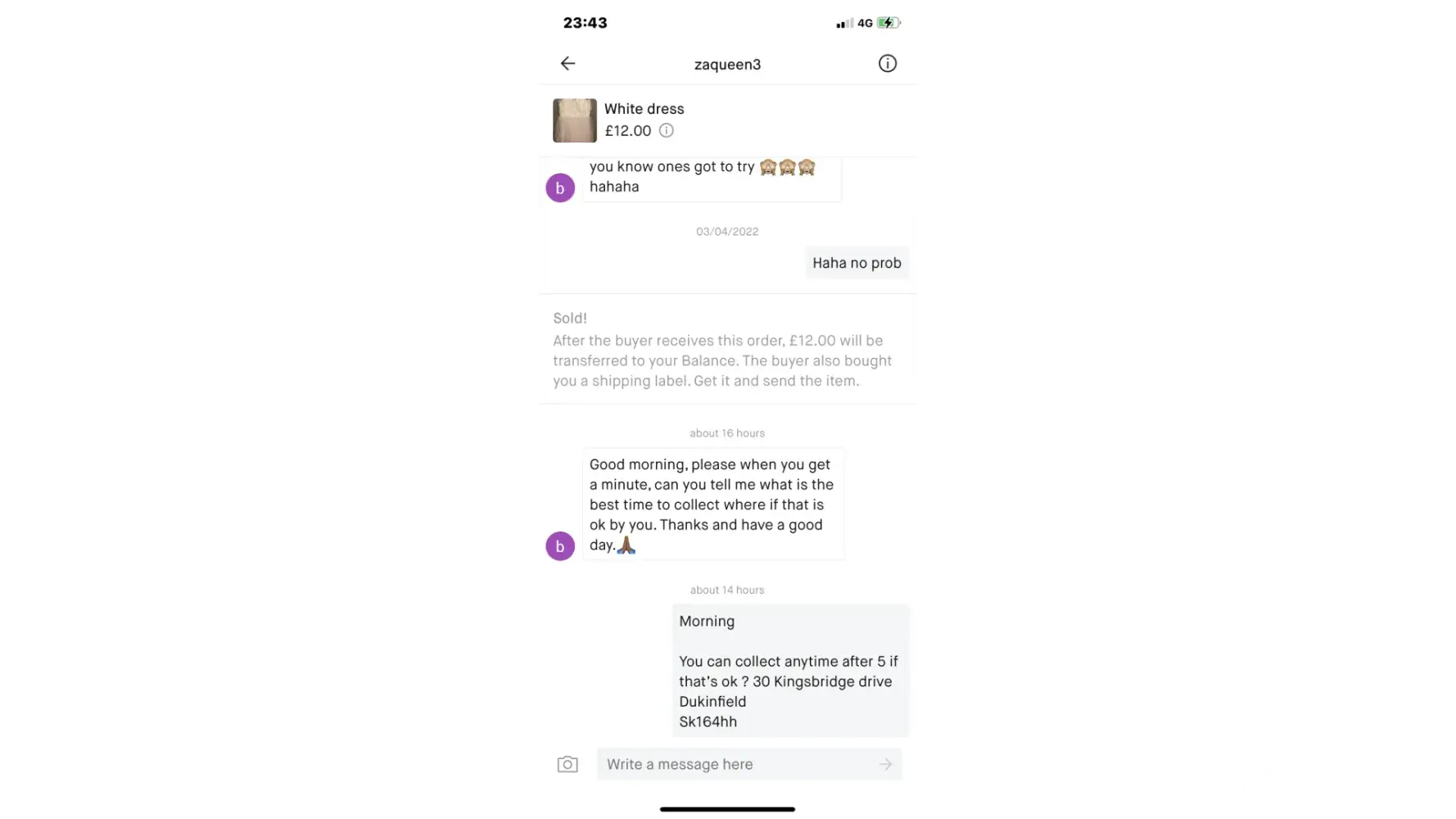 On 04/02/2022 I had sent out a parcel that was placed by another member, The buyer requested print at home Hermes (ParcelShop).