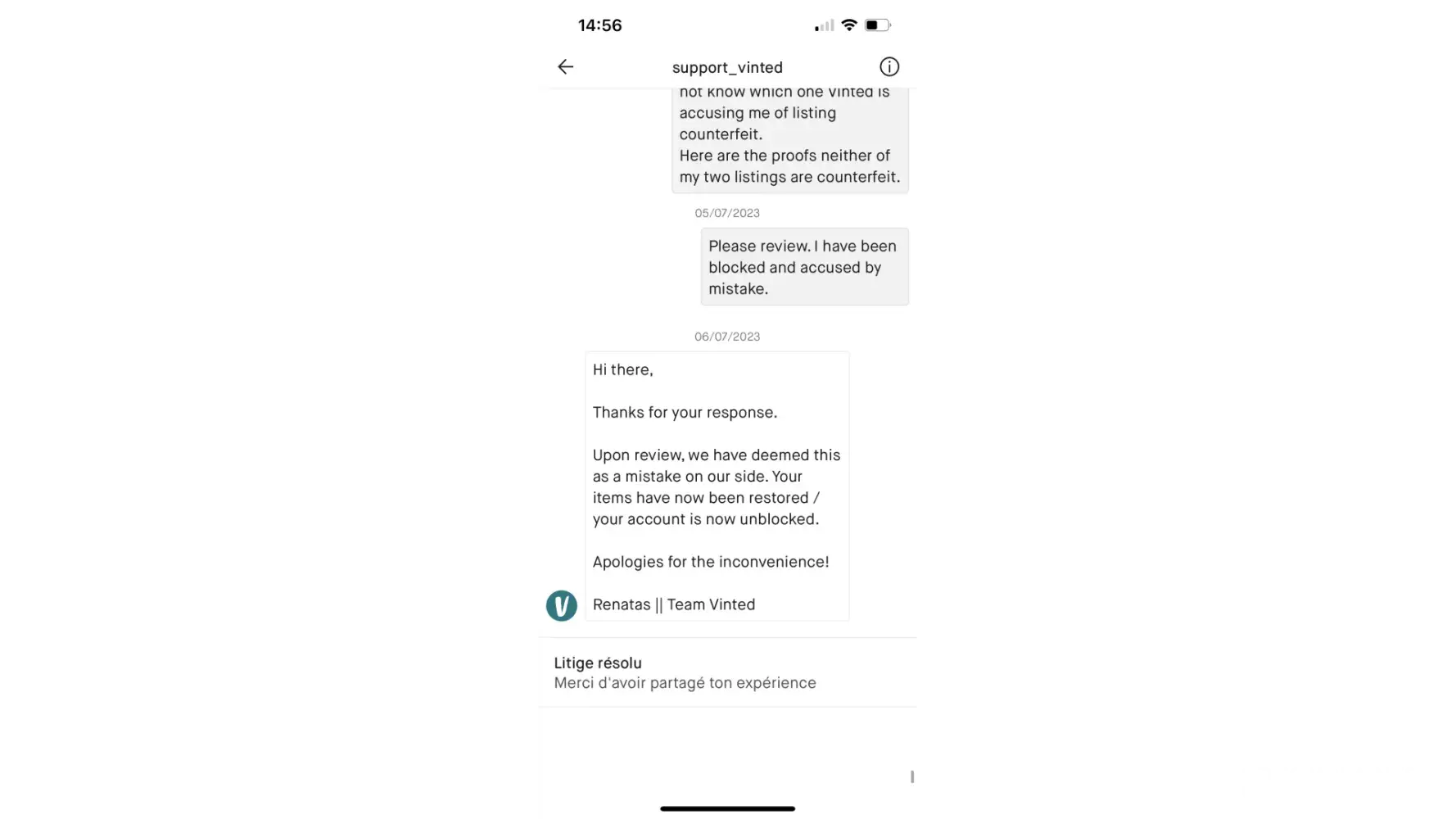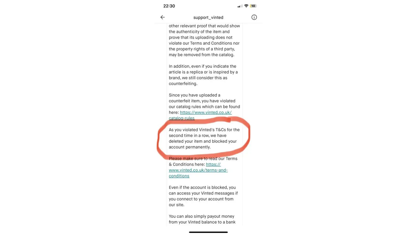 I bought a t-shirt on Vinted which didn't fit me. I relisted it the following day only to be blocked and told that the item was fake. They terminated my account and said I had violated their rules.