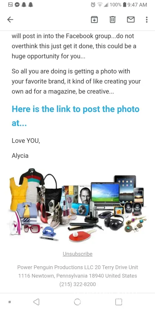 This is 100% true, I also sat through a 2 hour “meeting†where I got told empty truths. The company is ran by Alycia kaback, she tries to get you to either relate or feel like you have an attachment to what she says.