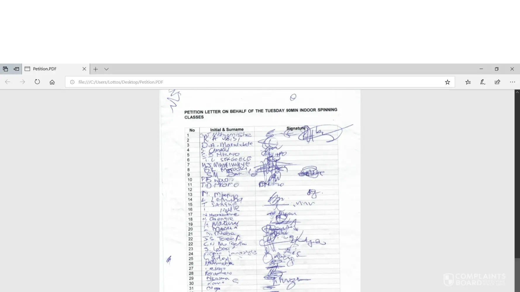 7. It is requested that the management and the instructor work out something regarding this class. See the attached signatures.
