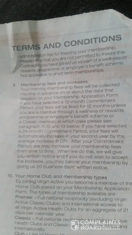 My contract states that "if" my membership would be increased i would be "notified in writing" now if i am not notified the assumption would be that there won't be an increase. And i would be given an opportunity to cancel (20 days written notice to you) off which that again i wasn't given an opportunity to do as there was no notice in writing or even a verbal notice from Virgin Active regarding my supposed increase.